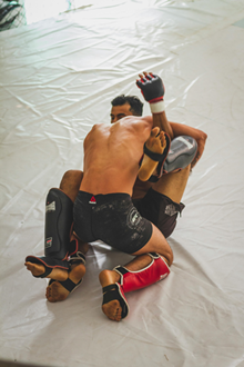 버터플라이 가드의 첫 단계는 상대의 허벅지에 내 두 발을 위치시키는 것입니다. 이러한 동작은 상대방의 하체를 컨트롤하여 쉽게 균형을 무너뜨릴 수 있는 자세가 됩니다. 상대가 서 있거나 무릎을 꿇고 있을 때, 내 두 발을 상대의 허벅지 안쪽에 깊숙이 넣어 상대의 균형을 흔들 준비를 하세요. 발의 위치를 정확히 잡는 것이 버터플라이 가드의 핵심이자 첫 번째 스텝입니다.